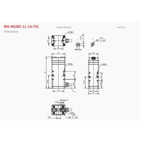 The RM-MGBD-11-14-S0028-ITG is a compact, precise, silky-smooth, drop-detecting, stable and reliable miniature gripper with built-in controller, which is able to adaptively open and close in parallel, making it suitable for gripping and lifting small workpieces of various sizes and materials. The RM-MGBD is designed with two jaws for simultaneous gripping of objects, which improves stability and reliability. The opening and closing stroke is 13mm, the maximum clamping force is 15N, the wire outlet is adapter and the wire length is 2.8m.